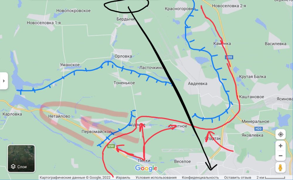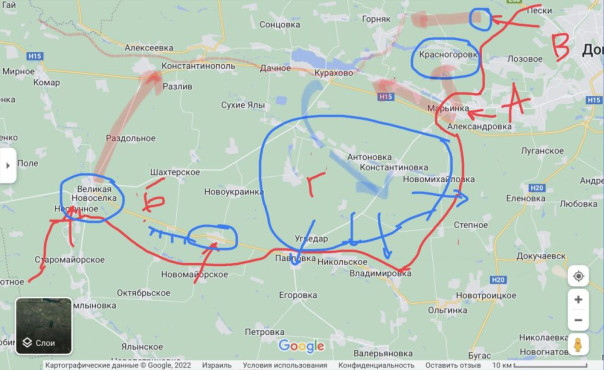 Ключом к успеху тут является Марьинка и Красногоровка, а также недавно начатое наступление в районе Великой Новоселки.