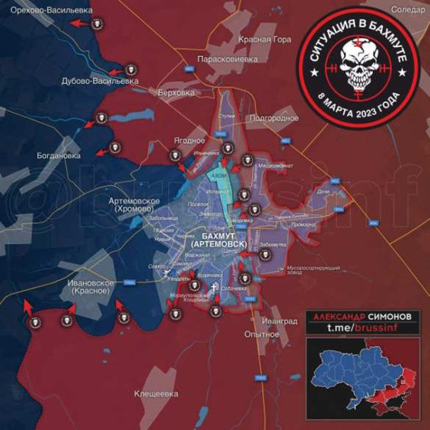 Такие, на первый взгляд бессмысленные, действия противника обусловлены поставленной украинскими властями политической задачей - любой ценой удержать Артемовск. Несмотря на постоянное давление со стороны бойцов российской ЧВК "Вагнер", украинская армия продолжает удерживать под своим контролем населенные пункты Красное, Хромово и Богданово. При этом на западные окраины Бахмута (Артёмовска) переброшены подразделения ГУР Украины, в которые входят боевики так называемых нацбатов.