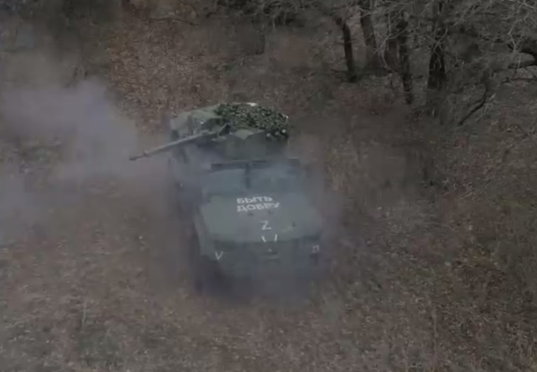 Подойдя на минимально близкое расстояние к позициям ВСУ, десантники огнем из 30-мм автоматической пушки подавили огневые точки украинских формирований. На видео также показано, как из бронеавтомобиля десантируется отряд пехоты и продолжает вести огонь по противнику.