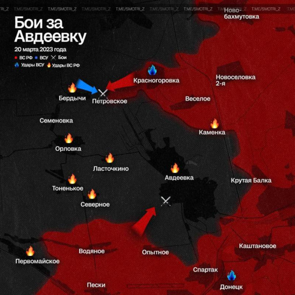 «Пока все СМИ пишут о битве за Бахмут, серьезное сражение разворачивается в Авдеевке, о котором предупреждал Залужный. Российские войска обходят город и берут его в котел по сценарию Бахмута, что вынуждает Генштаб срочно перебрасывать резервы на восточный фронт», – отмечает телеграм-канал «Резидент».