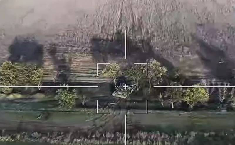 Второе видео показывает поражение танка ВСУ «Ланцетом» на направлении Кременная-Сватово. В ролике демонстрируется произошедшее с разных ракурсов.