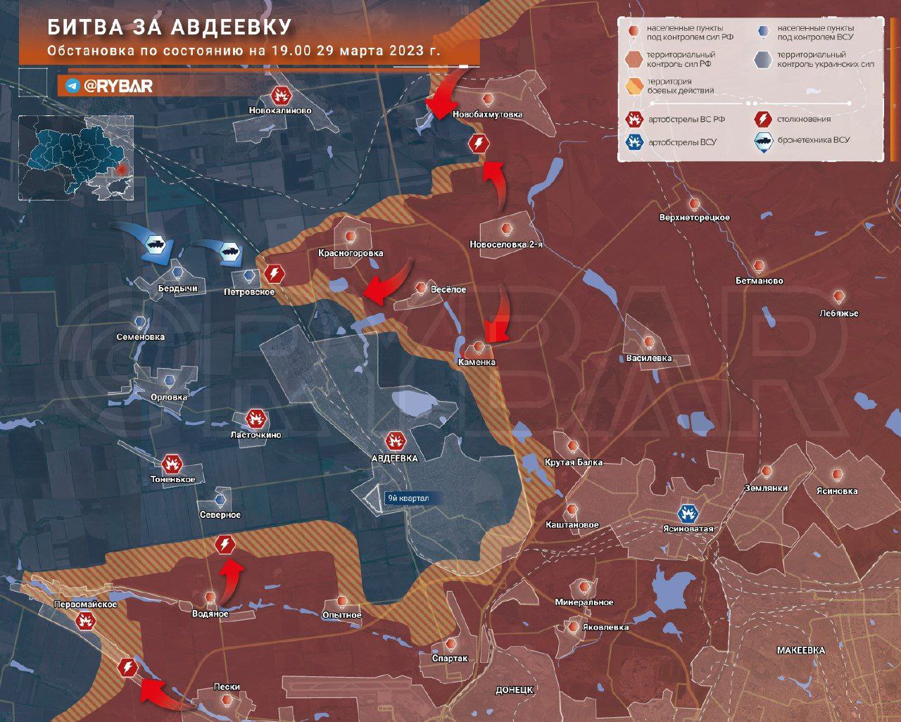 Битва за Авдеевку обстановка по состоянию на 19.00 29 марта 2023 года