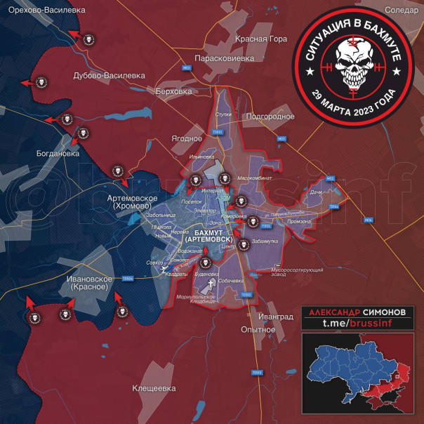 Борис Рожин о ситуации на Артемовском направлении на 20.53 мск 29 марта 2023