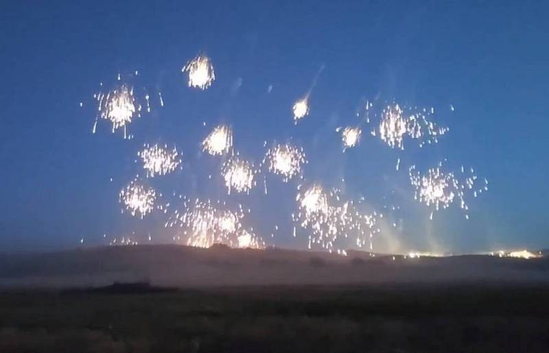 Судя по опубликованным кадрам, удар наносился в темное время суток. От большого количества зажигательных снарядов, выпущенных по позициям украинской армии, город в буквальном смысле запылал.