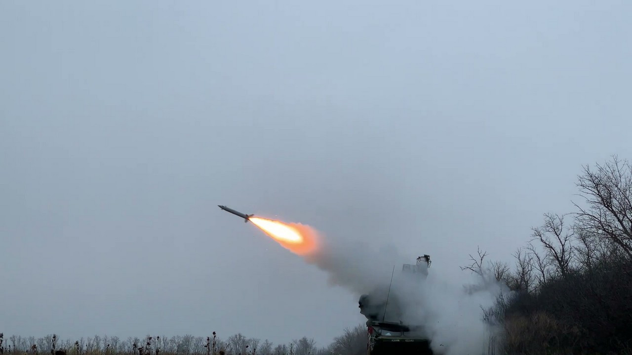 Пуск зенитной управляемой ракеты 9М33М3 боевой машиной 9А33БМ3 комплекса 9К33М3 «Оса-АКМ» в зоне СВО