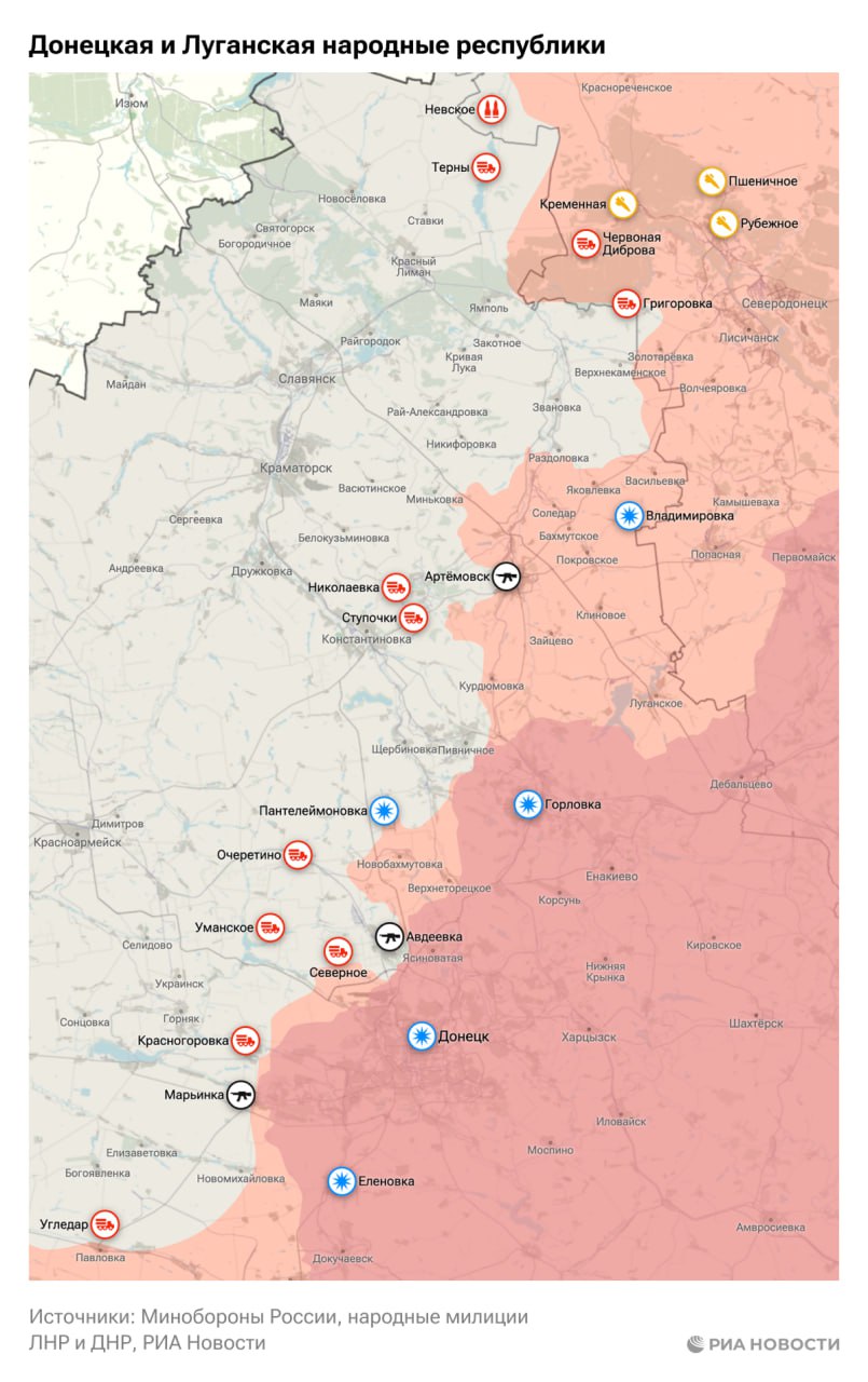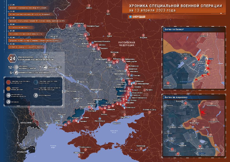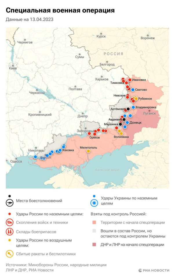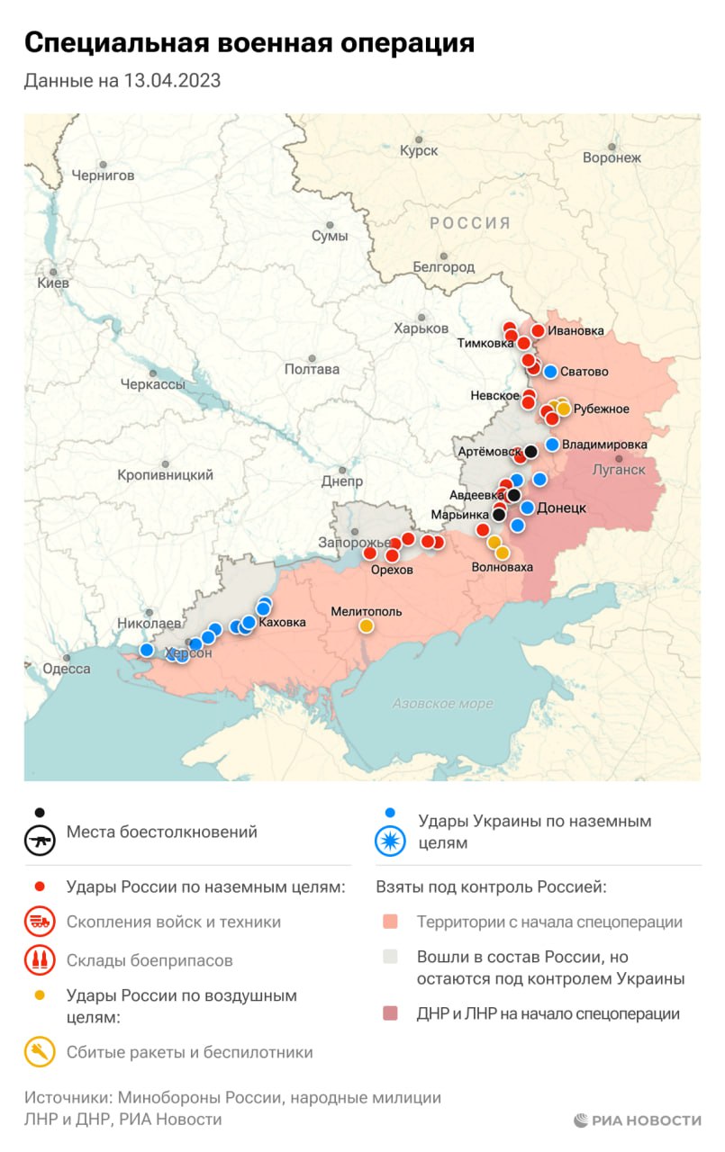 Карта военных действий и ситуация на фронтах вечером 13 апреля