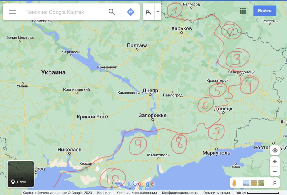 - Выбранная конфигурация фронта позволяет, как удобно защищаться, несмотря на преимущество в расположении у наступающих, так и по окончании оборонительных действий, успешно перейти в локальные контрнаступления, используя созданные плацдармы. США это понимают. Цитата Нуланд из комментов: "Мы работаем над поддержкой украинских военных, чтобы русские не могли после контрнаступления [украинцев] вновь захватить их земли спустя месяцы или годы".
