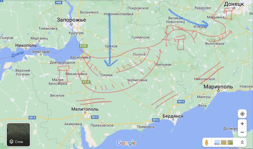 Удар может быть нанесен в любом направлении. Не только для попытки прервать сухопутный коридор в Крым, но и подвинуть линию фронта к старым границам России.