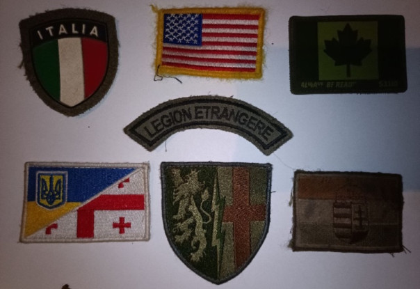Шевроны были сняты с уничтоженных наёмников. Первым под ударами вагнеров был аннигилирован Иностранный легион (Франция). Они стояли на окраинах Бахмута и поэтому полегли одними из первых. Уже позднее попались американцы, итальянцы, шведы, немцы, грузины, канадцы. Собственно, весь спектр иностранных наемников представлен на шевронах. Источник