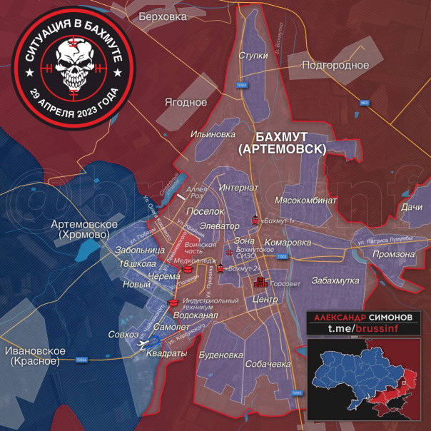 Обстановка в Бахмуте на утро 29 апреля 2023 года от ТГ-канала "Позывной Брюс"