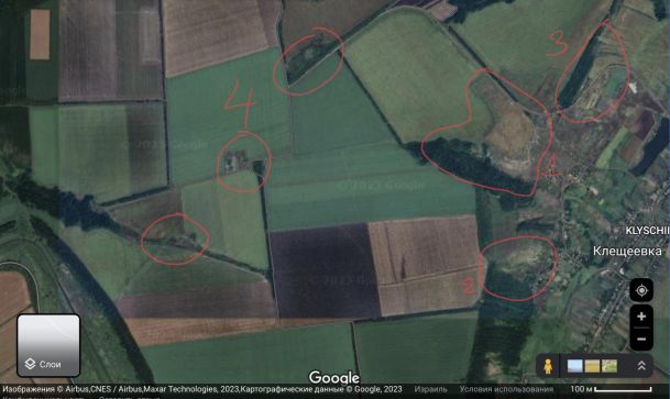 Задача ВСУ была сбросить наших с гребня у Клещеевки, и занять три крупных укрепрайона, еще в прошлый раз вырытые ВСУ, в которые наши и отошли оставив передовые группы в цепочке позиций (4).