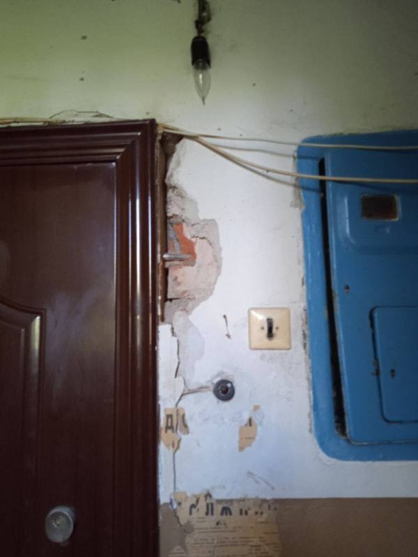 Вследствие прямого попадания снаряда, выпущенного по поселку шахты им. Гагарина (Никитовский район Горловки) украинскими террористами, повреждена квартира № 4 дома № 23 по улице Ясная.