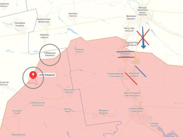 ▪️ "Посёлок Урожайное перешёл в серую зону, так как российские войска ведут в этом районе контрнаступательные действия. Такого хода событий следовало ожидать, ибо взятие Старомлиновки, расположенной южнее, открывает для ВСУ оперативный простор для наступления по нескольким направлениям. Бои продолжаются". Источник