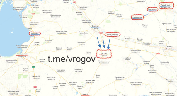 Основная цель наступательных действий противника в районе н.п. Работино - выход к Токмаку.