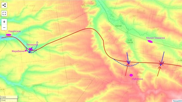 ВС РФ продолжали отбивать локальные атаки противника у Работино и Пятихаток. Существенных успехов противник добиться не смог. Обостряются жалобы ВСУ на критическую нехватку инженерно-саперной техники для преодоления минных полей.