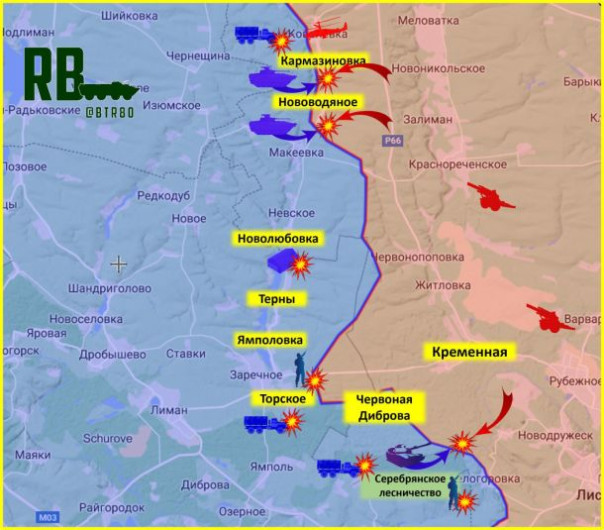 ● На вражеской карте отражены изменения юго-западнее Берховки в ходе контратак ВС РФ, нашим удалось продвинуться и оттеснить ВСУ.
