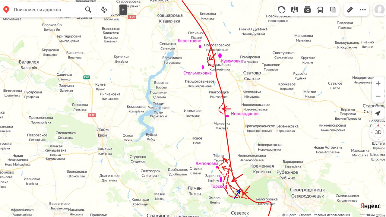 ● Наши атаки возобновились под Купянском, продолжаем наступать в районе Куземовки и Торского. За выходные удалось отбросить противника от Клещеевки.