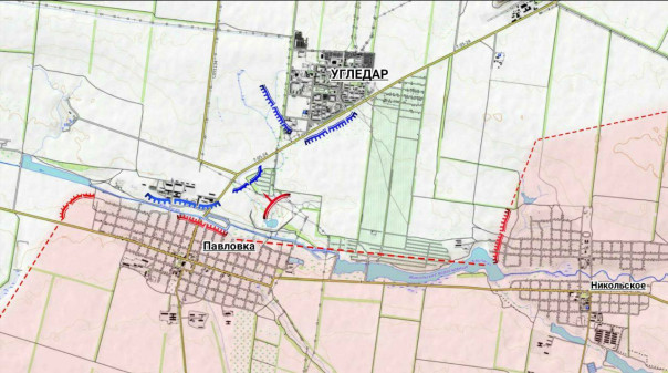 Движемся дальше по линии фронта. Надо обратить внимание на Угледарское направление - наши морпехи и силы специального назначения начали здесь медленно двигаться вперед (см. Карту 4). Пока взято всего два опорника врага, но они очень ценные. Наши сейчас штурмуют на рубеже Павловка комплекс ферм с целью продвинуться на южную оконечность Угледара, чтобы занять важнейший перекресток рокады, связывающей Угледар с Марьинкой. И районной дорогой, ведущей к селу Богоявленское.