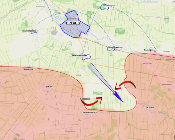 Однако на этой неделе наметилось интересное продолжение - наши войска перерезали трассу Орехов - Работино в районе южного ставка. И начали методично зачищать опорники врага справа и слева от ставка (это условно юго-западная окраина села). То есть горлышко мешка на рубеже Работино-Вербовое начинает медленно затягиваться.