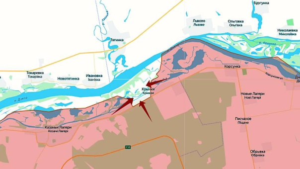Следует отметить, противник очень рассчитывал на серьезный успех при занятии данного плацдарма, и, пожалуй, последние силы своей ударной группировки бросил именно в район Крынок. Враг хорошо подготовился, провел сосредоточение, зачистил наши укрепы на островах и мощным рывком форсировал Днепр, начав развивать наступление. Цели у украинского командования были весьма амбициозные: развить наступление и перерезать трассу Е58 (М-14), одновременно расширяя плацдарм вверх и вниз по течению реки.