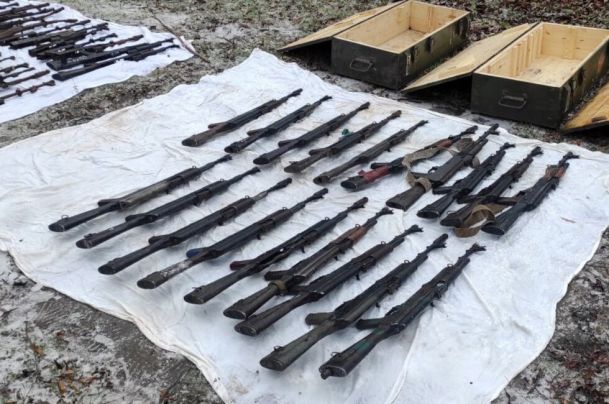 «УФСБ России по Донецкой Народной Республике в поселке Луганское (городской округ Дебальцево, ДНР) обнаружен схрон с огнестрельным оружием, принадлежащий одному из украинских неонацистских вооруженных формирований. Обнаружены и изъяты: автоматы Калашникова-74 — 47 штук, пулеметы Калашникова модернизированные — два штуки», — сказано в сообщении.