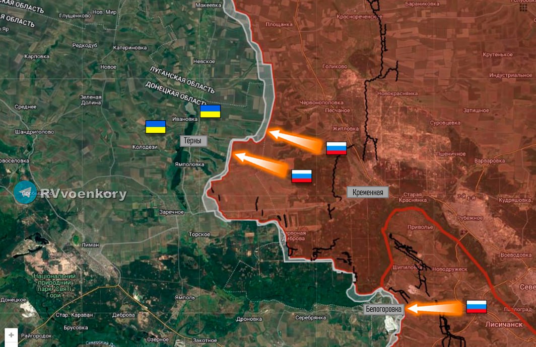 Нанесены авиаудары по позициям ВСУ в районах н.п.: Терны, Диброва, Северск, Выемка, Спорное, Веселое. Под огнём артиллерии и минометов районы более 10 н.п., среди них: Невское, Белогоровка, Торское, Серебрянка, Верхнекаменское, Спорное, Раздоловка. Источник