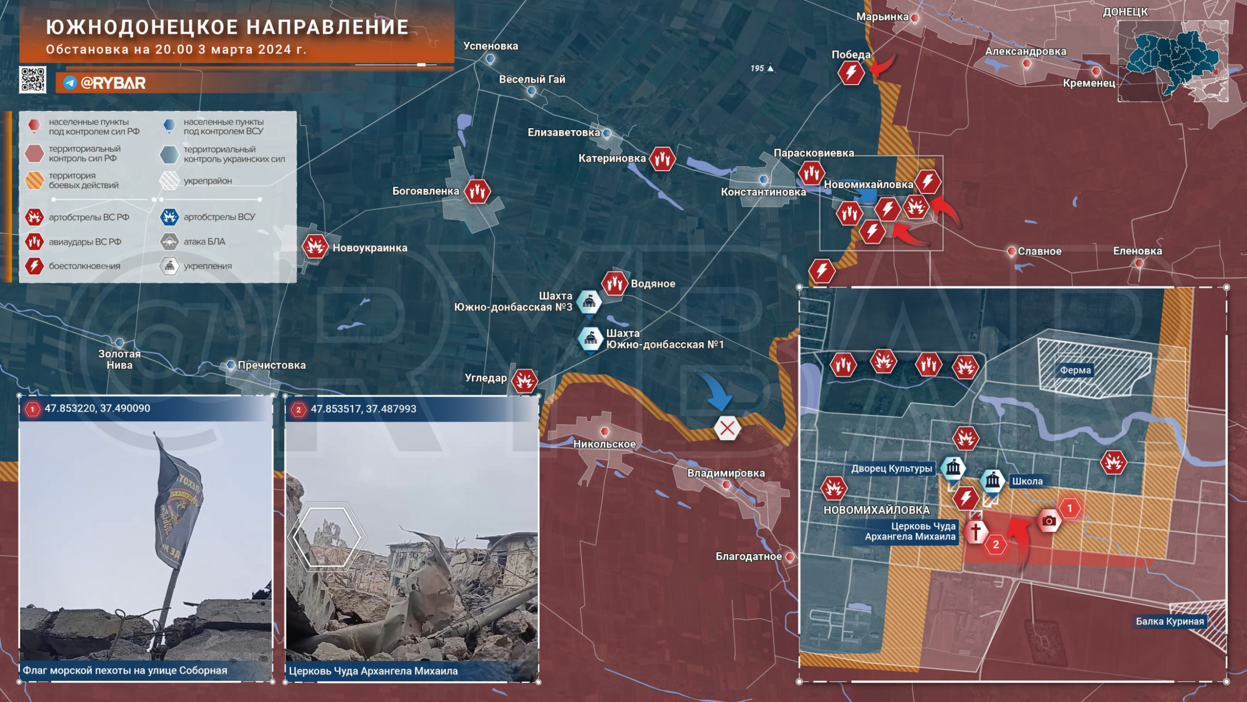 — Под контроль российских военнослужащих перешла часть улиц Шевченка и Соборной. Расположенный на передовой линии обороны ВСУ храм Архангела Михаила перешел под контроль ВС РФ.