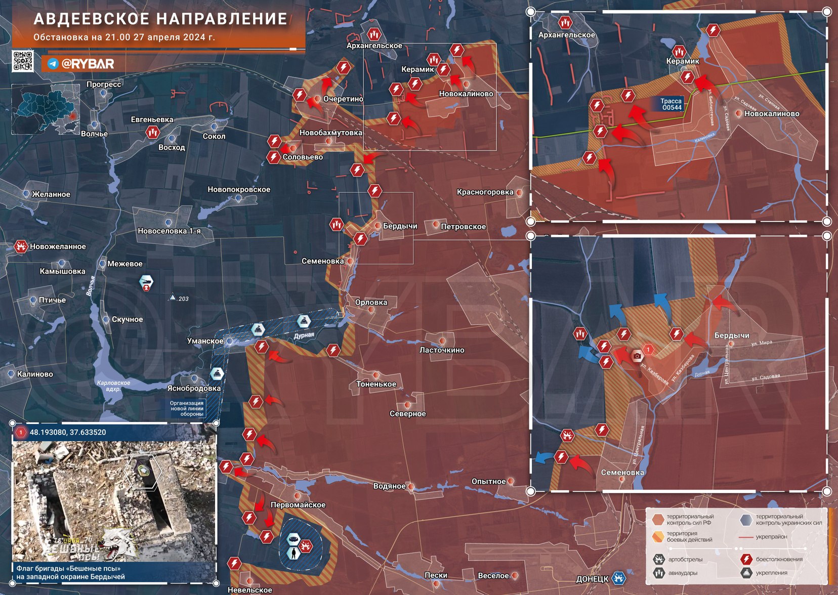 Очеретинское направление | Авдеевское направление: освобождение Бердычей и Новокалиново — обстановка на вечер 27.04.24...