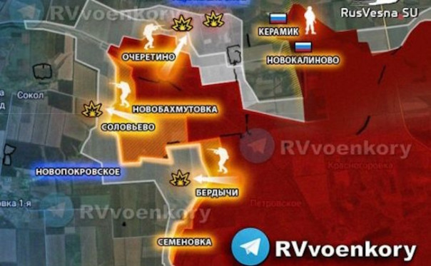 ► «Покровское направление: В Новокалиново россияне продвинулся вдоль улицы Ставковая на глубину до 650 м и вдоль улицы Першотравневая на глубину до 780 м. Российская пехота подошла вплотную к посёлку Керамик».