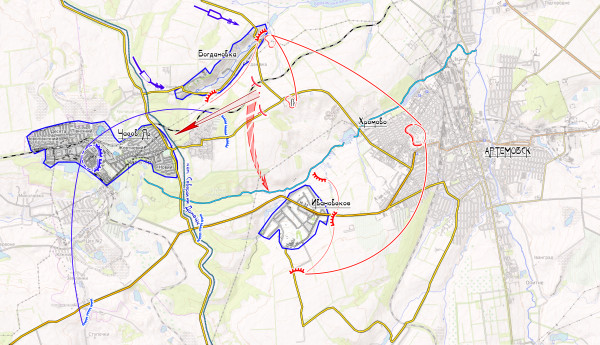 Пользуясь благоприятной обстановкой, наше командование развивало успешные действия под Артемовском, оказывая давление на противника и готовя плацдарм для развития наступления в район Часов Яра, как основного узла обороны противника на этом участке.