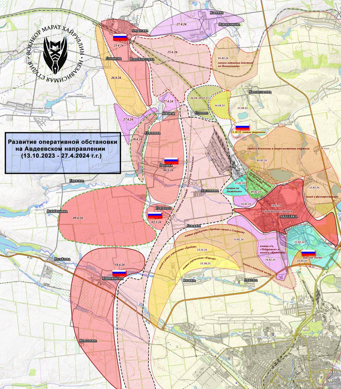 (Наш картограф Михаил, с точки зрения военного, оценил замысел командования ВС РФ в рамках Авдеевской операции. Автор текста (и карты) – Михаил Попов).