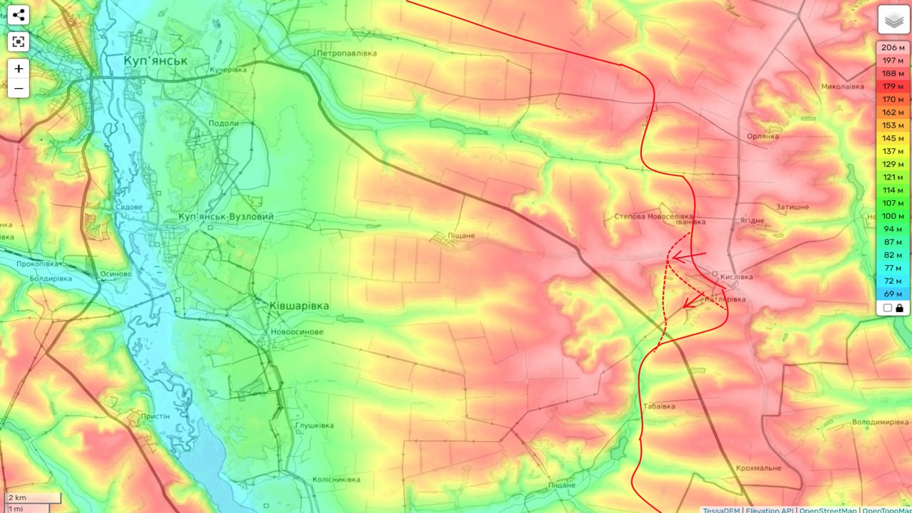 Между тем, это задача частная. Главная задача на этом участке — наступление по водораздельному холму на запад от Кисловки, которая может обрушить оборону ВСУ на всем участке до дальних подступов в Купянску пока не решена. Источник