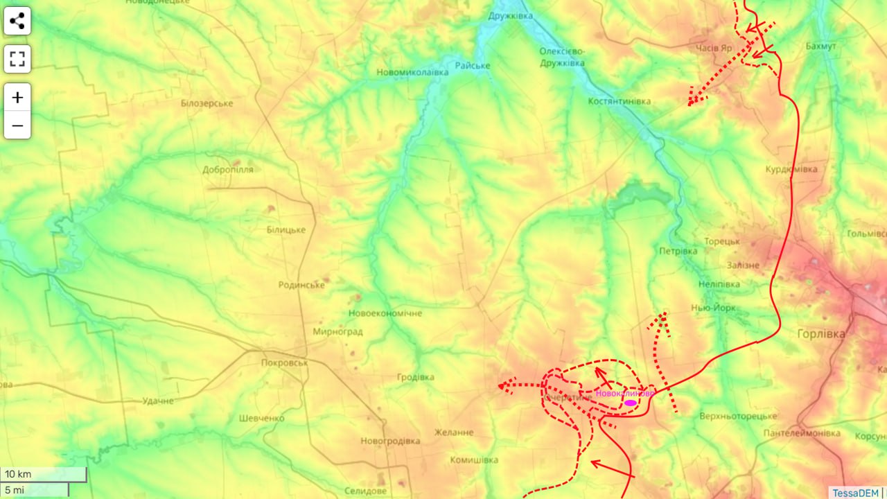 Под нашим контролем на флангах две фронтальные дороги для маневра сил и средств и одна тыловая ЖД ветка для ввода дополнительных резервов из глубины. На флангах блокировали и сковали противника, обеспечив успешное продвижение на главном направлении в сторону трассы Покровск-Константиновка. Наиболее вероятной целью является автомобильная развязка восточнее н.п. Малиновка.