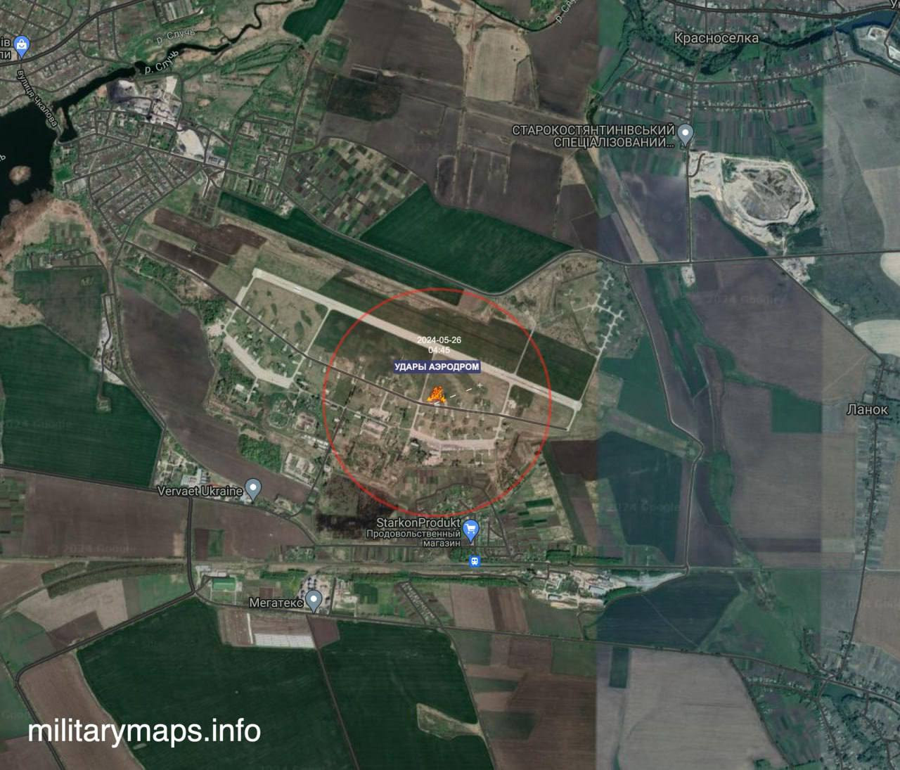 Ночью уничтожена ВПП и часть военной инфраструктуры аэродрома ВСУ Староконстантинов в Хмельницкие