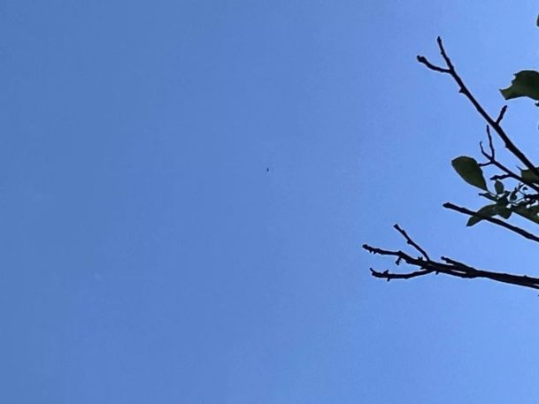Но прямо в этот момент над крышей дома проносится квадрокоптер и, слегка замедлившись, где-то в 30 метрах от нас разворачивается в нашу сторону.