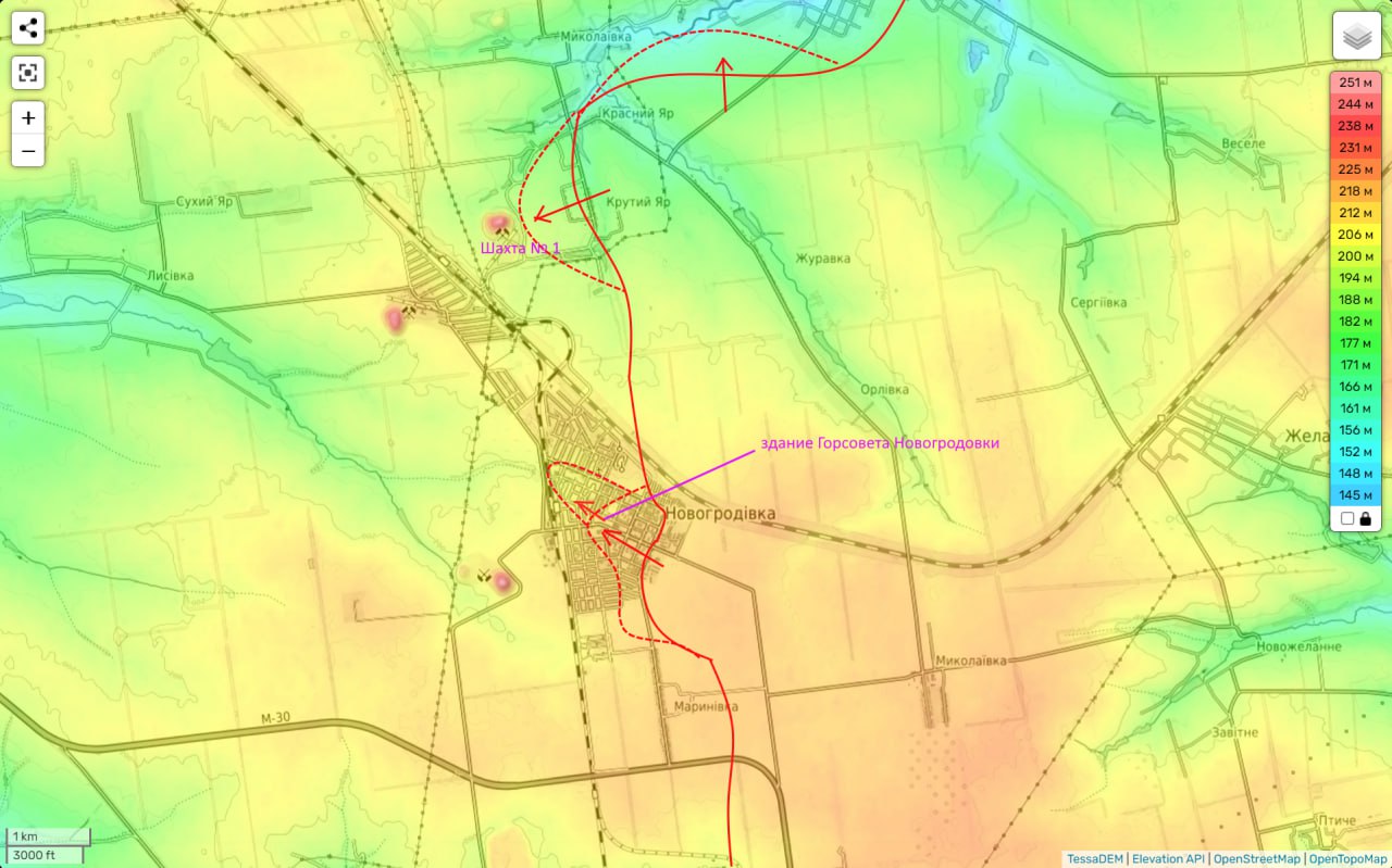 Судя по украинским пабикам к вечеру наши части закончили «разрезать» Новогродовку на две части. Причем, под контроль взята именно та часть города, где есть высотная застройка.