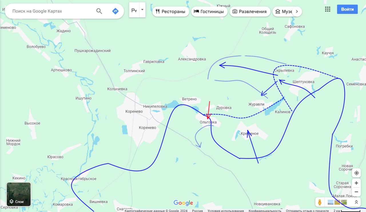 Кореневский участок. Здесь 810-я бригада контратакой выбила ВСУ из Ольговки, чтобы не давать противнику возможности накапливать здесь силы для дальнейших ударов. Но сама село значимыми силами занимать не стала.