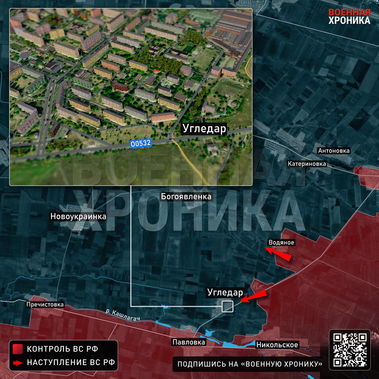 Угледарский укрепрайон попил немало крови российским войскам. Это был крепкий узел обороны, штурм которого долгое время упирался во множество различных проблем. После взятия Водяного и шахты «Южнодонбасская №1» с ним осталось закрыть два ключевых вопроса: во-первых, перерезать дорогу, через которую снабжается Угледар и оставшийся там гарнизон (огневой контроль над ней уже есть), во-вторых, сжать клещи со стороны Пречистовки и (если позволит обстановка) со стороны Павловки. После этого эпопея со взятием Угледара будет фактически завершена и он останется за спиной у российской армии. Сбегут сидельцы Угледара или останутся внутри - станет понятно в ближайшее время. Источник