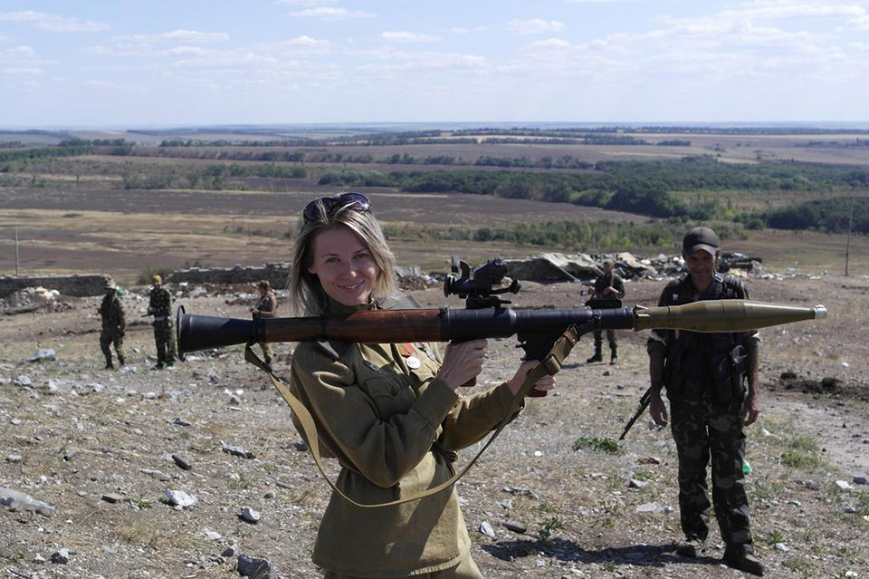 Ополченка из Сербии, позывной "Багира", с товарищем по оружию.