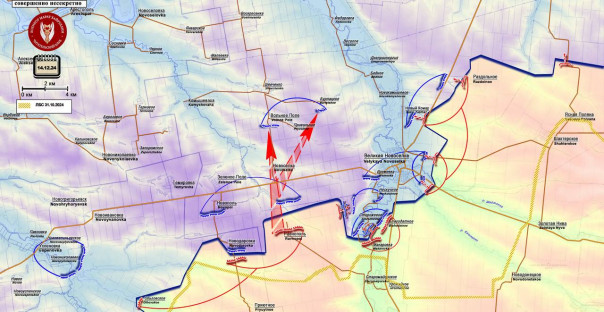 В районе Великой Новосёлки также продолжаются наступательные действия. Наши войска заняли между Урожайным и Благодатным территорию по линии реки, выйдя на берег Мокрых Ялов и подперев таким образом Сторожевое не только с востока, но и с юга. Подошли ближе к нему и с запада, продвинувшись на широком участке. Господствующая высота пока находится под контролем противника, но наши уже вышли севернее неё, охватывая подразделения ВСУ всё глубже и плотнее.