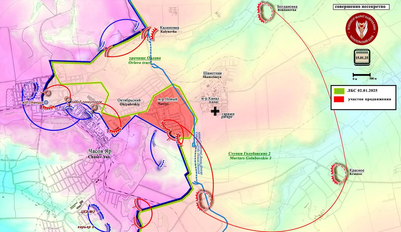 В Часов Яре российская армия установила постоянный контроль над микрорайоном Новый и зачистила в микрорайоне Октябрьский застройку возле лесного массива. В центральной части города наши подразделения продвинулись в квартале, расположенном южнее комбината огнеупоров, что даёт больше возможностей для давления на район многоэтажек.