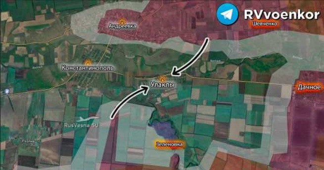 Соответственно, фактически перерезан основной маршрут снабжения украинского гарнизона на участке Константинополь-Улаклы. Мало того, российские штурмовые группы уже овладели несколькими улицами в этих населённых пунктах, атаковав позиции противника в обоих сёлах одновременно. Источник