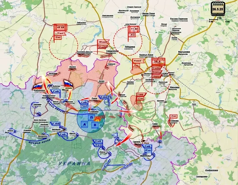 В Сумской области идут бои в Юнаковке, ВС РФ преодолели первую линию обороны ВСУ Веселовка — Журавка — Басовка