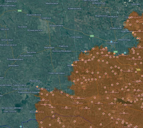 Освобождено ЗВЕРЕВО, идёт штурм ЛЕОНТОВИЧЕЙ. ВС РФ также продвигаются в районе НОВОЭКОНОМИЧЕСКОГО и шахты «КАПИТАЛЬНАЯ». ДРГ фиксируются в ПОКРОВСКЕ и у МИРНОГРАДА.
