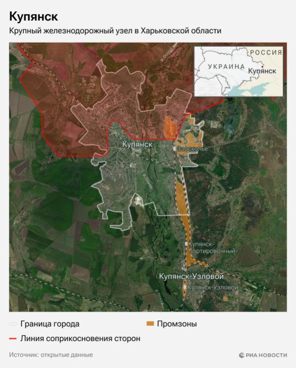 Потеря Купянска больно ударит по киевскому режиму. Этот город — важный логистический центр, железнодорожный узел (станции Купянск-Узловая, Купянск-Сортировочный). Тут пересекаются и автомобильные трассы — Т-2109 и Р-07. Через Купянск снабжается вся группировка ВСУ на восточном берегу реки Оскол, контролирующая восточную часть Харьковской области.