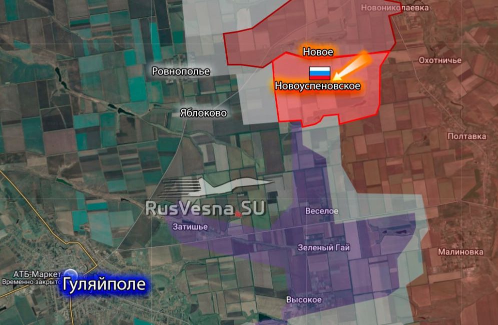 ВС РФ освободили Новоуспеновское в Запорожской области. Об этом 11 ноября сообщает телеграм-канал "Воин ДВ"