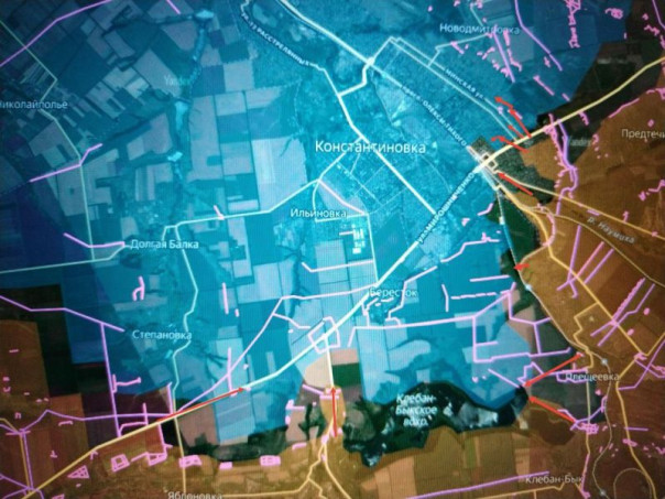 Южнее Константиновки наши подразделения вышли на высоты севернее Клебан-Быкского водохранилища, одновременно атакуют в их направлении со стороны ИВАНОПОЛЬЯ и ПЛЕЩЕЕВКИ.