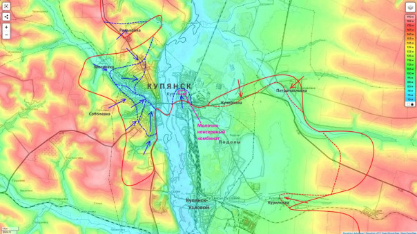 Сегодня днем пришла новость о том, что что противник нанес нам удар в восточной части Купянска и сумел занять территорию молочно-консервного комбината.
