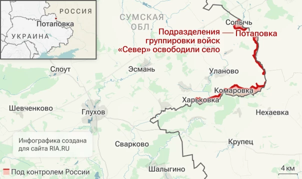 "В результате решительных действий подразделения группировки войск "Север" установили контроль над населенным пунктом Потаповка", — отмечается в сводке.