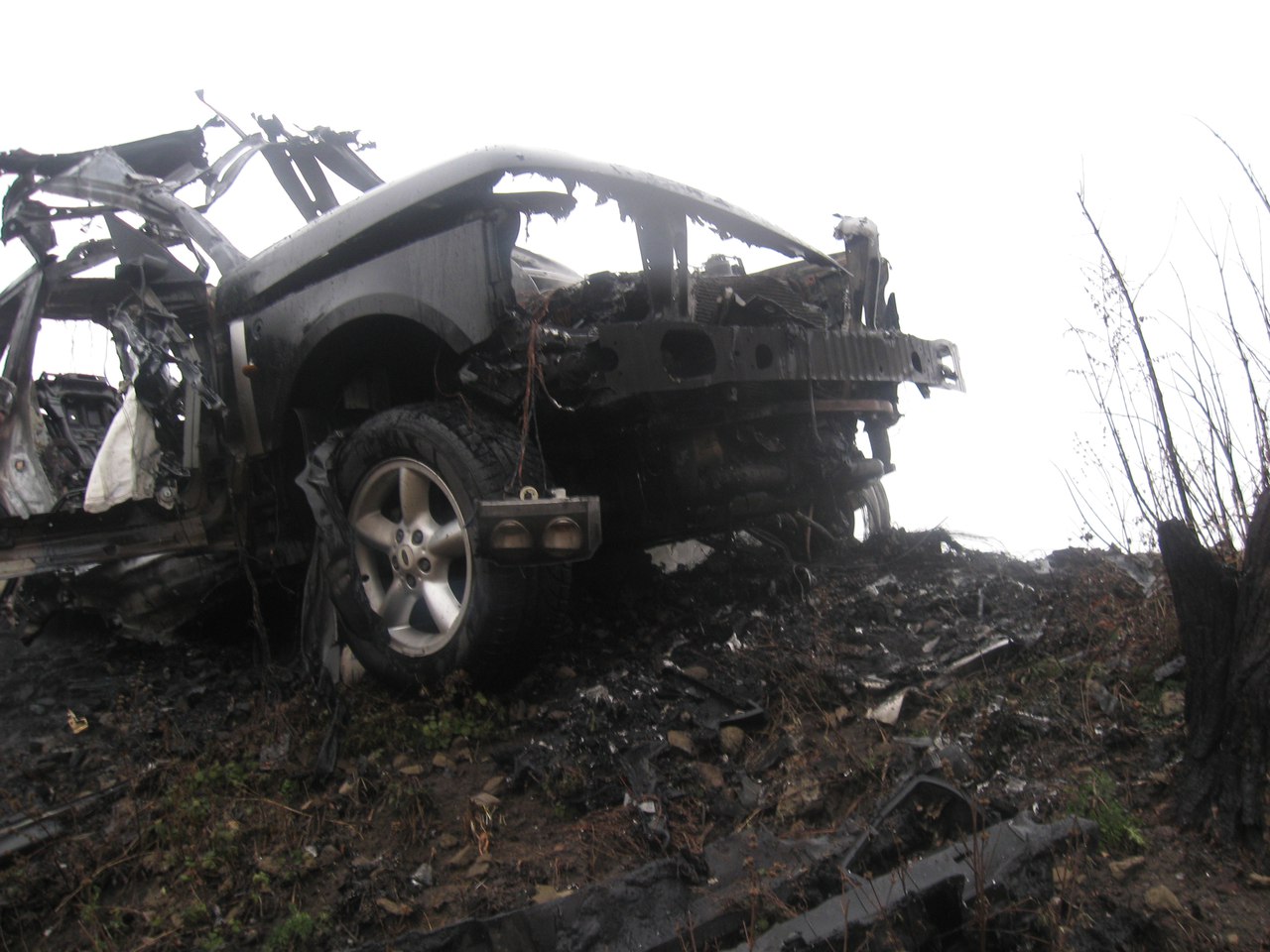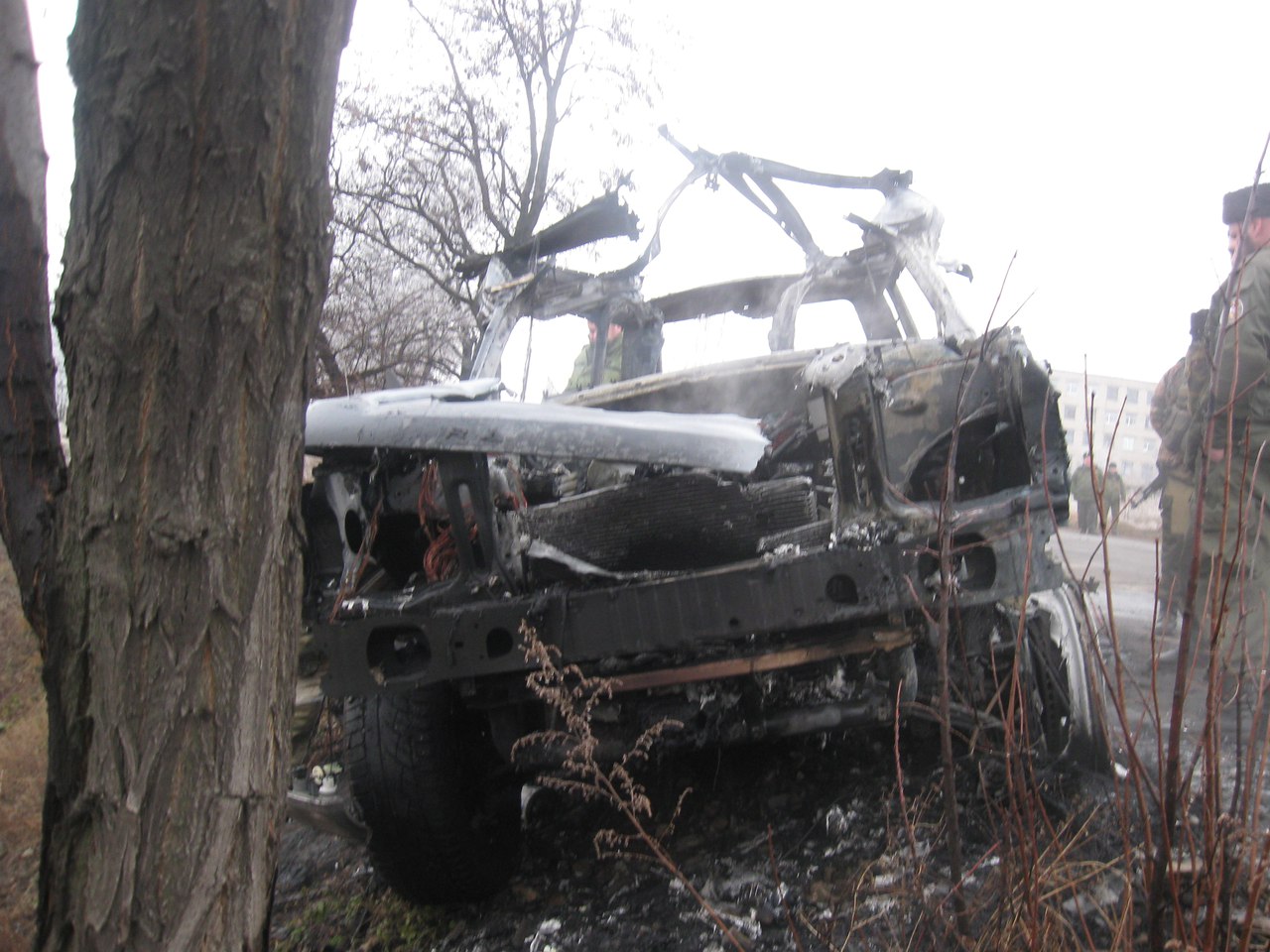 Мы не показываем тело Павла. Только это. Но он был выброшен из машины. Таким образом, взрыв был внутри машины. Фрагменты рассбросало на 70 метров.